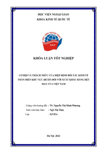 Cơ hội và thách thức của Hiệp định Đối tác Kinh tế toàn diện khu vực (RCEP) đối với xuất khẩu hàng dệt may của Việt Nam